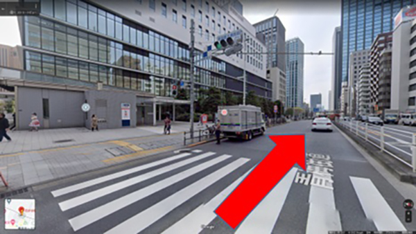 しばらく直進しますと公園通り口の大きな交差点に出ますので横断歩道を渡って左折してください。